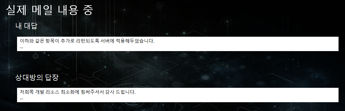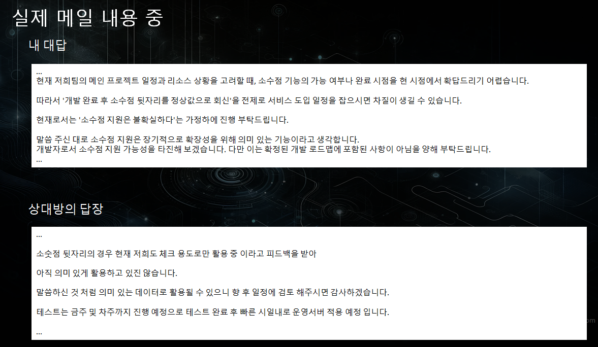 -> 요구사항 분석 및 초기 설계를 완전히 실패한거죠. 심지어 캡슐화도 안된 메일입니다. 이러면 엄청 구차해보입니다. 알게뭐야 변명하려고 장황하게 적는건가? 느낌이 들 수 밖에 없죠.