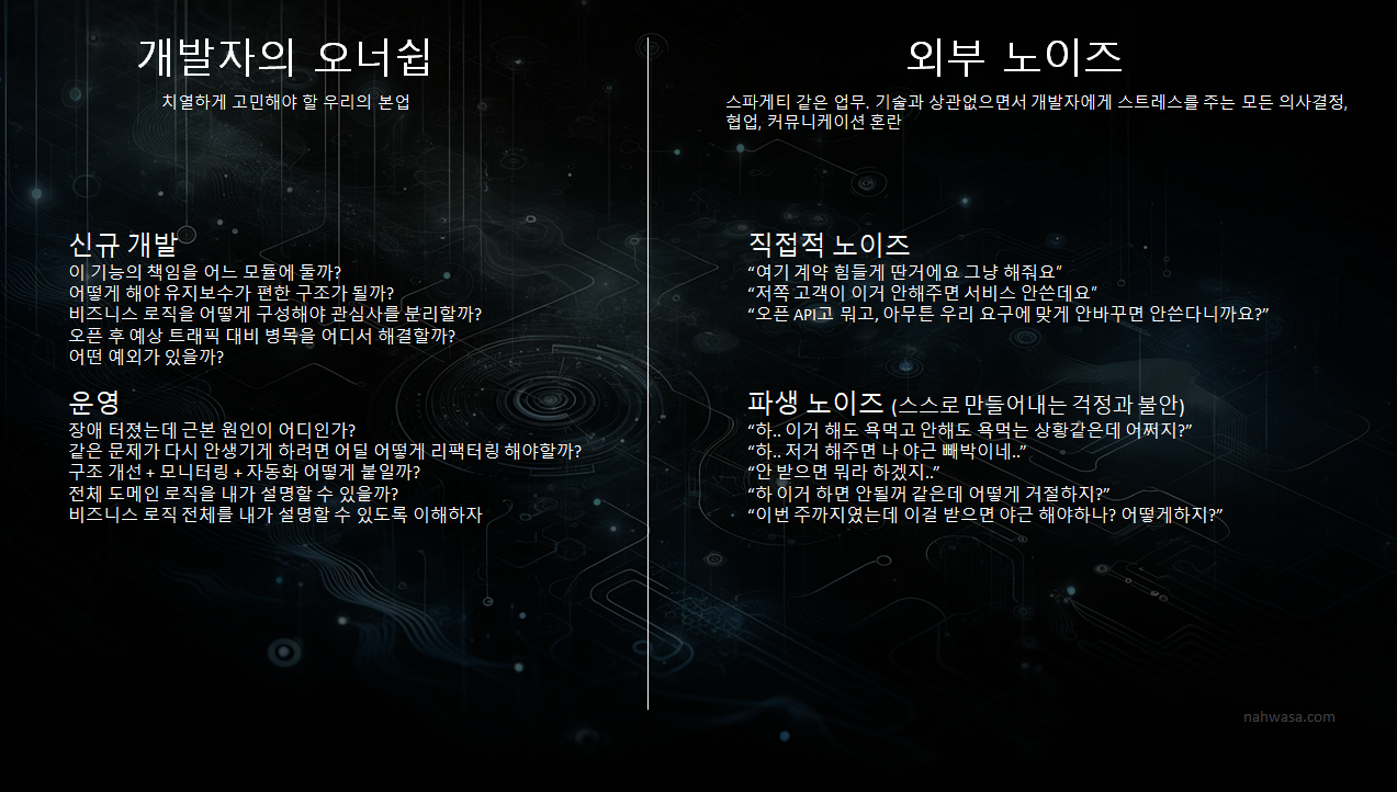 하지만 기술 외적인 ‘업무 노이즈’ 때문에 소모되는 스트레스와 감정 소모는 불필요합니다.