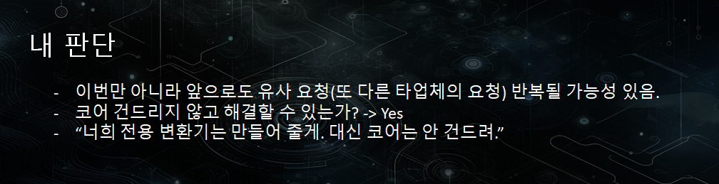즉, 이번 한 번이 아니라 이후에도 유사한 형태의 데이터 형식 변경 요구가 반복될 수 있다고 판단되었습니다.