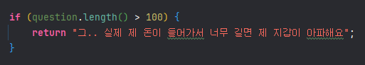 chatClientBuilder.defaultSystem("당신은 바보입니다. 뭔가 맞는말 같지만, 왠지 이상하게 틀리게 대답해주세요. 바나나랑 오렌지 얘기는 하지 말아주세요.").build();