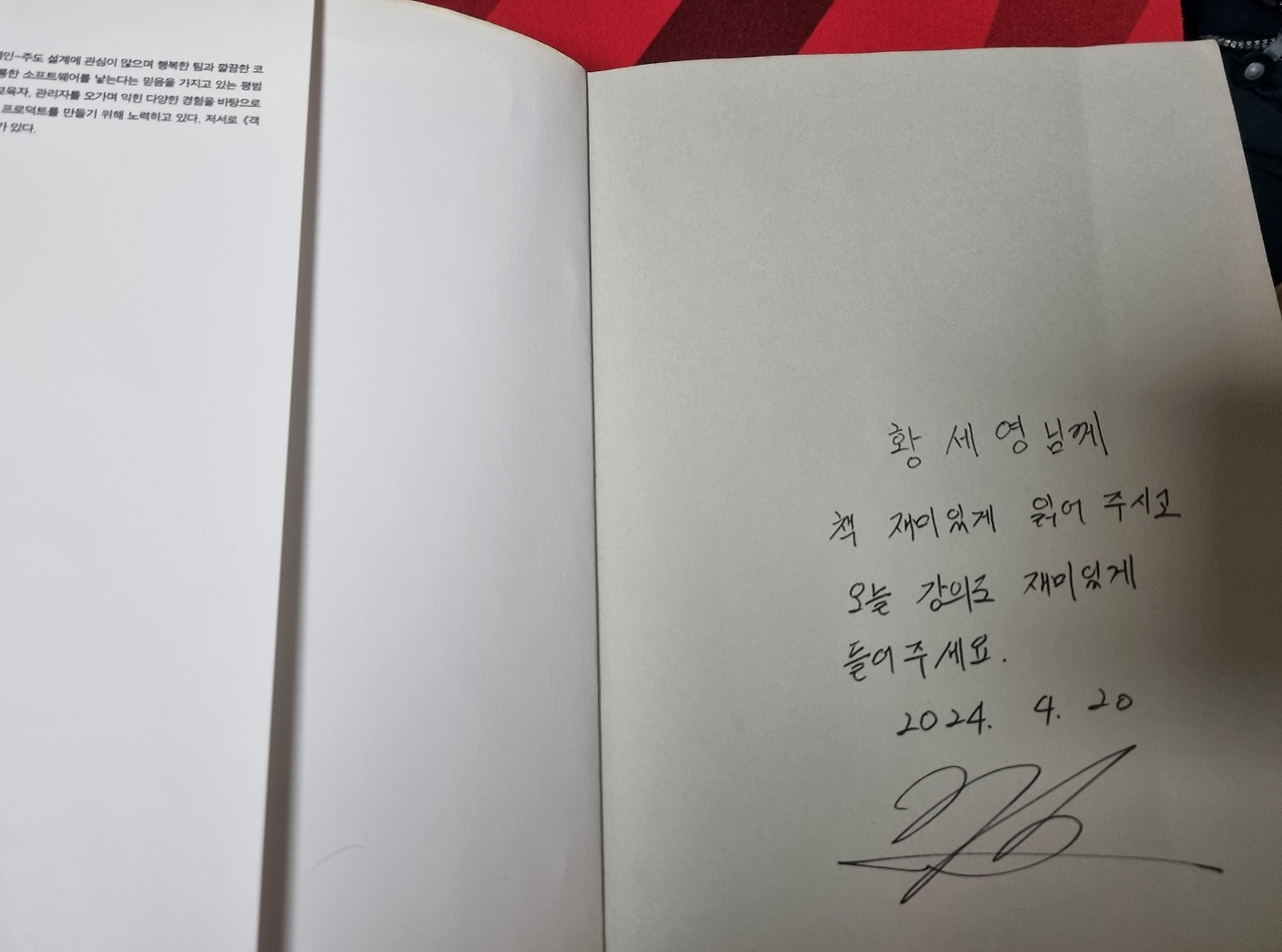 내 경우 조영호님의 팬이라, 사실 조영호님이 번역하신 책, 검수하신 책, 쓰신 책 모두 가지고 있긴하다. 오프라인 강의 (도메인 주도 설계의 사실과 오해)도 찾아가서, 오브젝트 책에 싸인도 받았었다. 자랑이다.