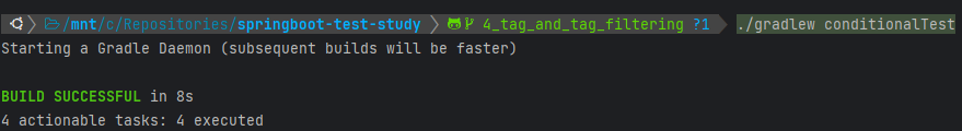 - @Test가 붙은 함수 혹은 테스트 클래스에 @Tag로 원하는 태그를 지정할 수 있음