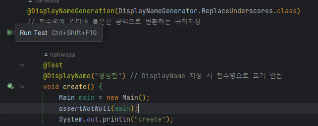 @DisplayName("생성시에 (항상 성공해야 하는 테스트들)")