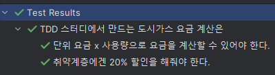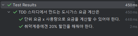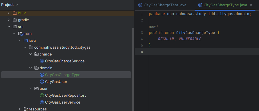 그에 맞춰 구현을 바꿔준다. enum을 추가해주고, 계산하는 부분에서 상태값에 따라 분기쳐서 요금계산을 해준다. 테스트코드쪽에 기존 일반 요금엔 CityGasChargeType.REGULAR를 넣어준다.