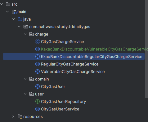 - 요구사항 : 도시가스 요금을 계산하는 간단한 로직이 필요함. '단위 요금 x 사용량' 으로 금액을 계산할 것임. 다만 다른 요금 계산 방식이 추가될 예정이다(취약계층 할인 등등). 추가로 아직 DB 부분이 정해지지 않은 상태에서 우선 요금 계산 하는 로직부터 테스트해보며 짜려 하는 상황이다.