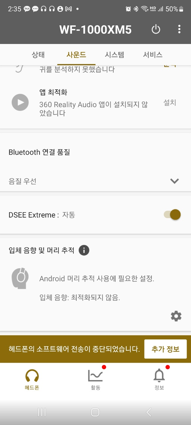 물론 핸드폰으로 직접 통화하는것보다는 떨어지지만, 기존에 xm4 까지는 상대방이 들을 때 많이 별론거 같아서 항상 이어폰을 빼고 통화했는데, xm5는 이정도면 이젠 이어폰으로 통화해도 될 것 같습니다!