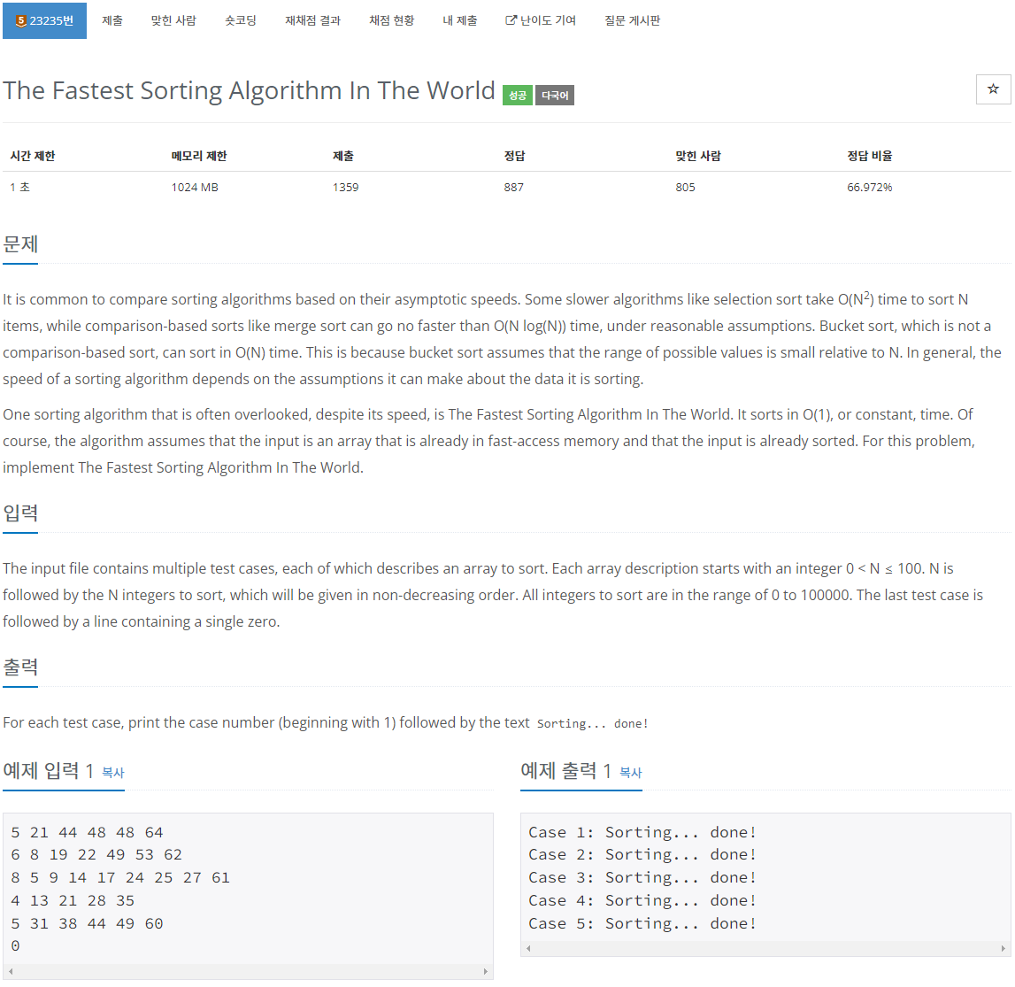 sb.append(String.format("Case %d: Sorting... done!\n", i));